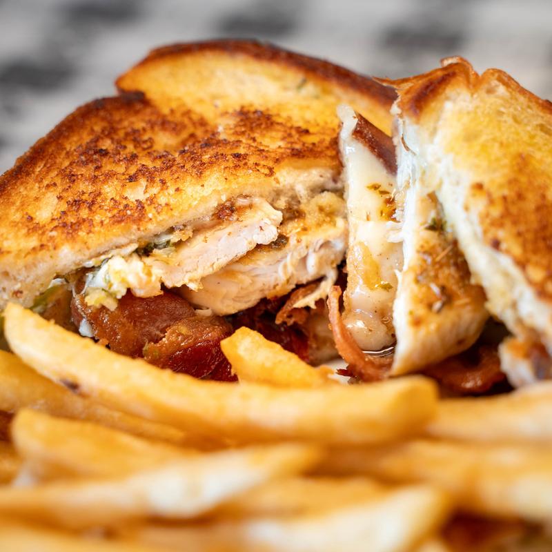 French toast, turkey, bacon, and Swiss cheese.
